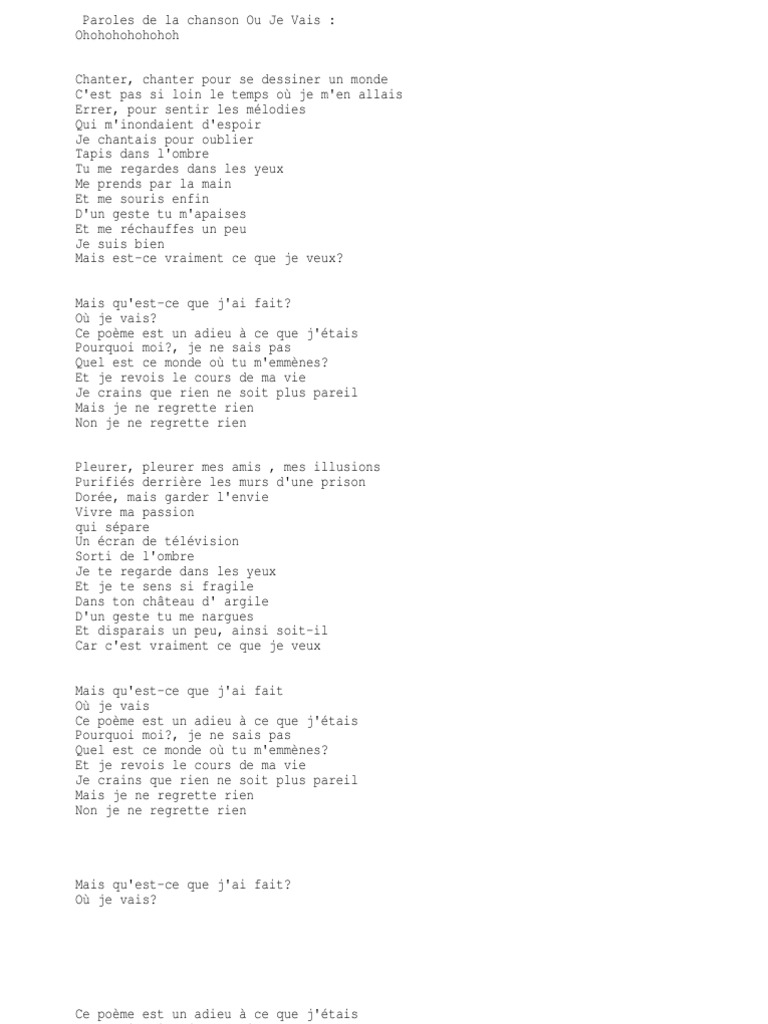 Mon cœur tu l'a balafré j'restais chez moi pendant qu'tu sortais faudra pas revenir l'après, revenir après couplet 2 :